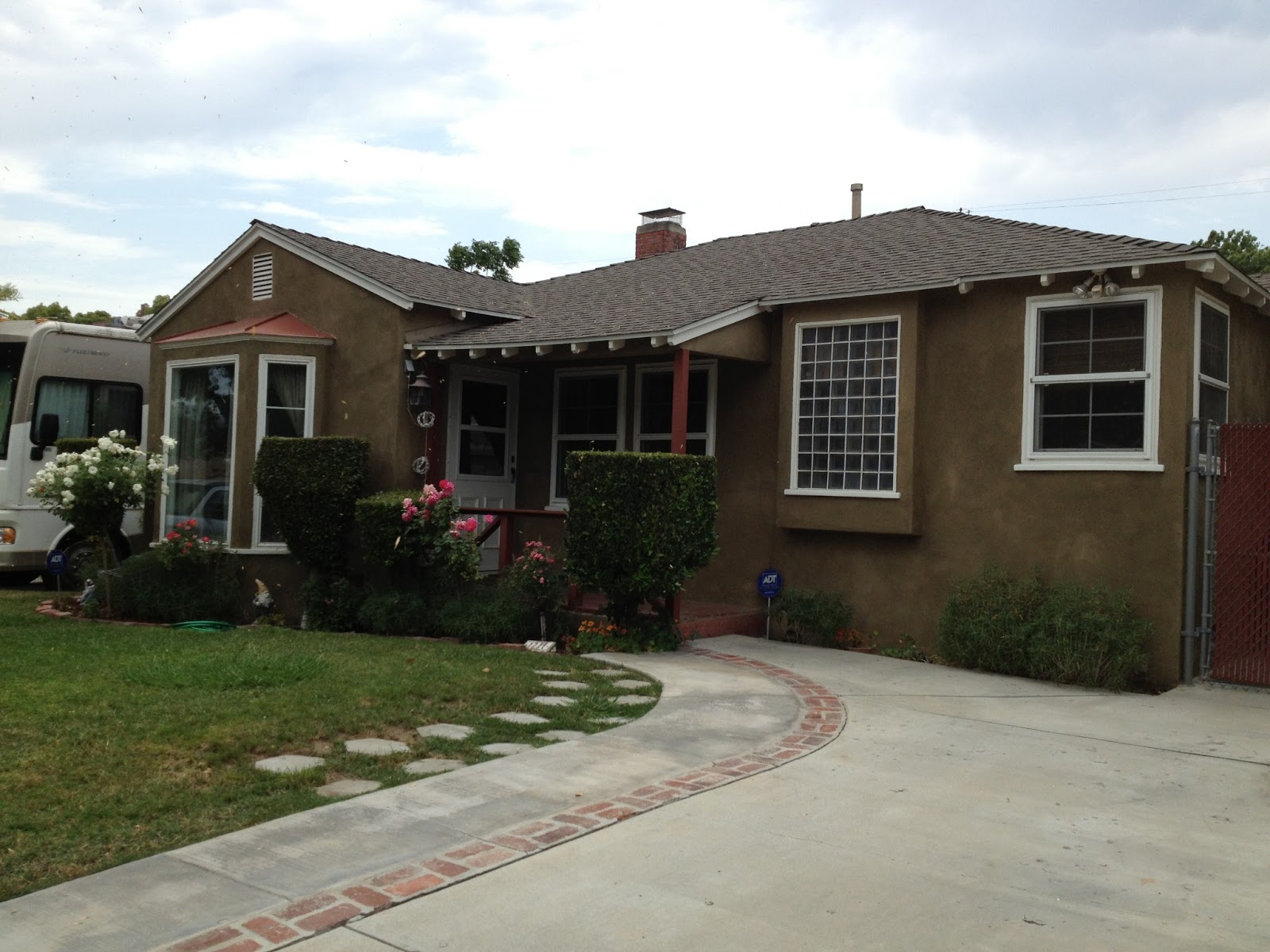 This house was in a nicer location and was recently remodeled, but still felt tiny. Also, the windows in the living area looked out directly onto the neighbor’s RV parked in their driveway. You could reach out and touch it. The backyard had a good mix of patio and grass. We liked the backyard better than the house.