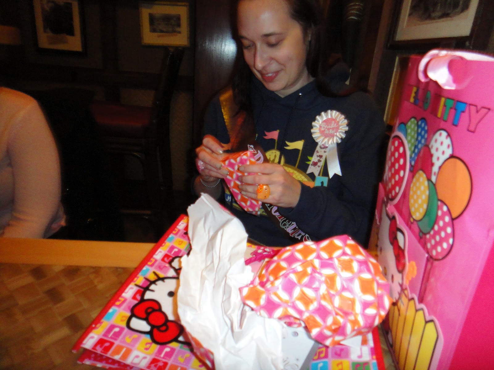 We ordered some drinks and I opened gifts – 99% Hello Kitty related!