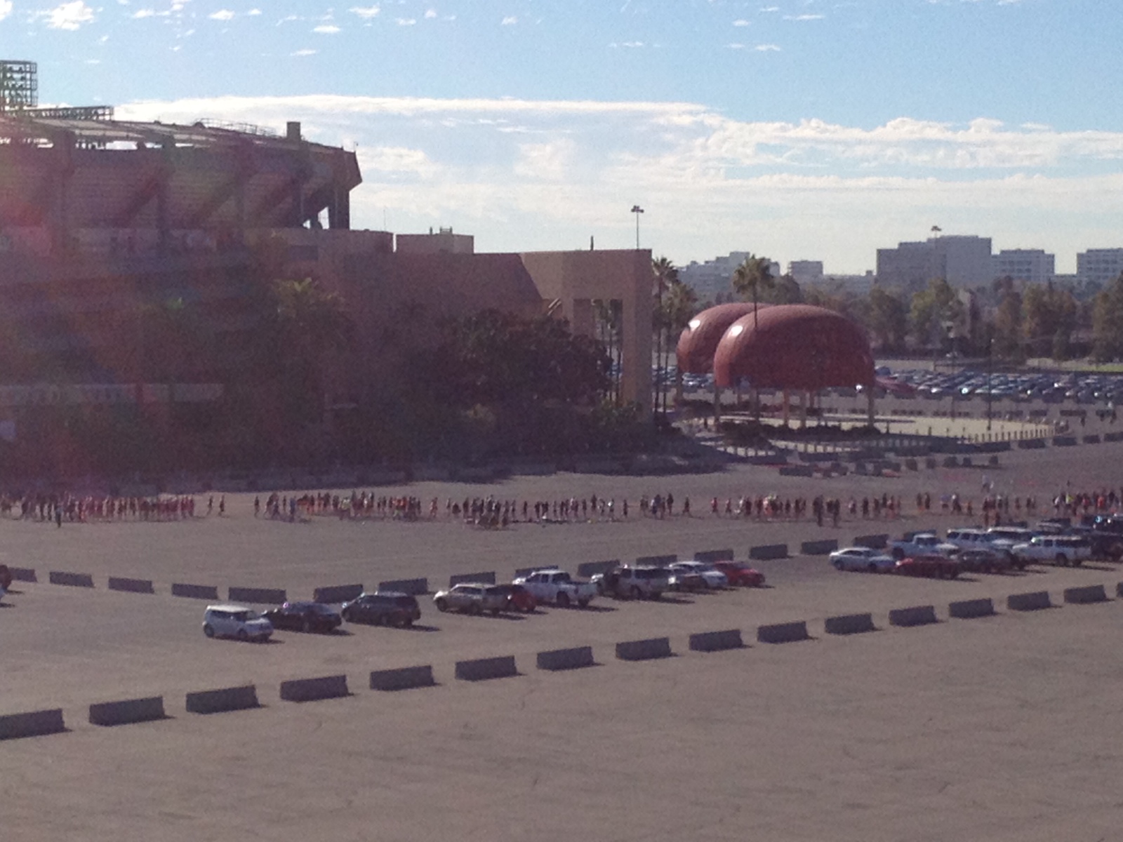 After we exited Angel Stadium I recognized the apartment building of my friend Nerissa, so I took a picture (not pictured here for her privacy) and texted it to her. I wasn’t sure she would be awake because it was pretty early. But a few minutes later she sent me back a picture of us from her roof deck! I have NO CLUE if I’m in here somewhere!