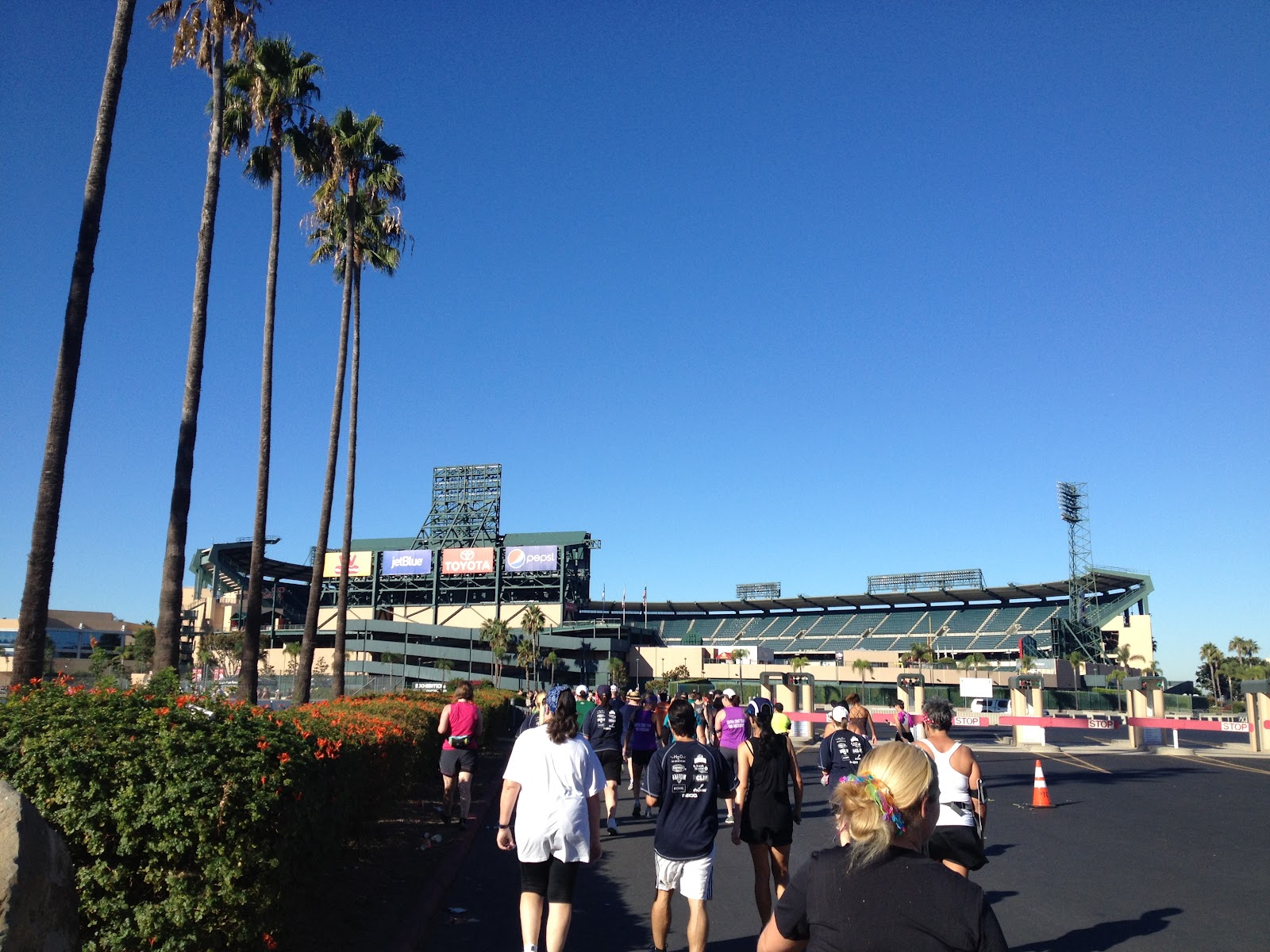 But I didn’t fall asleep. As I found out during our wedding weekend, I can’t sleep when I’m super excited/nervous/scared. I was tired but kept thinking about the race and feeling really nervous. I think it was mostly fear of failure and fear of the unknown. I considered trying to take some kind of sleep aid but I was worried it would negatively affect my race performance, and I knew even if I didn’t get any sleep my body would keep going from adrenaline. I did end up getting some sleep in spurts, maybe a total of 1-2 hours. I was already awake when my alarm was due to go off so I got up on my own and turned it off so it didn’t wake Mr. BFT. I got ready super quick but ended up waking Mr. BFT in the process, so I got a good luck hug and was out the door!