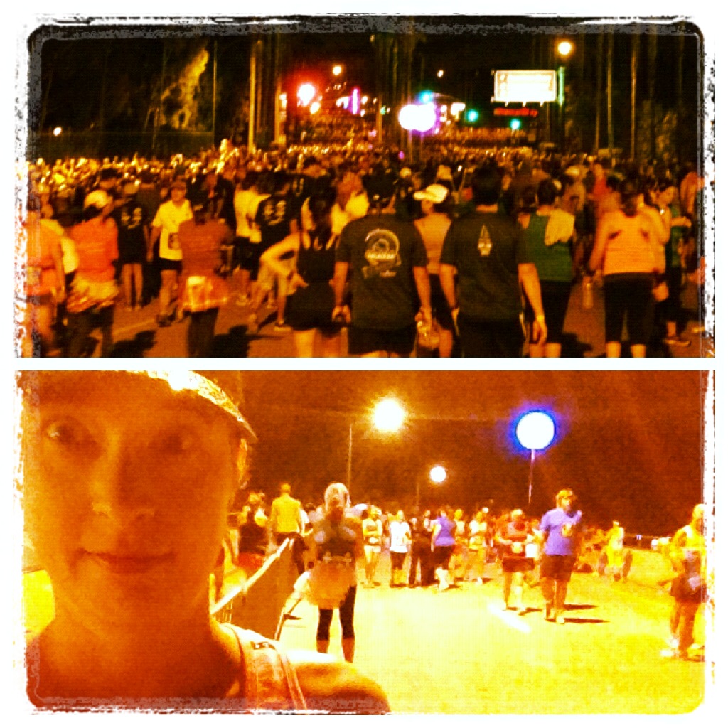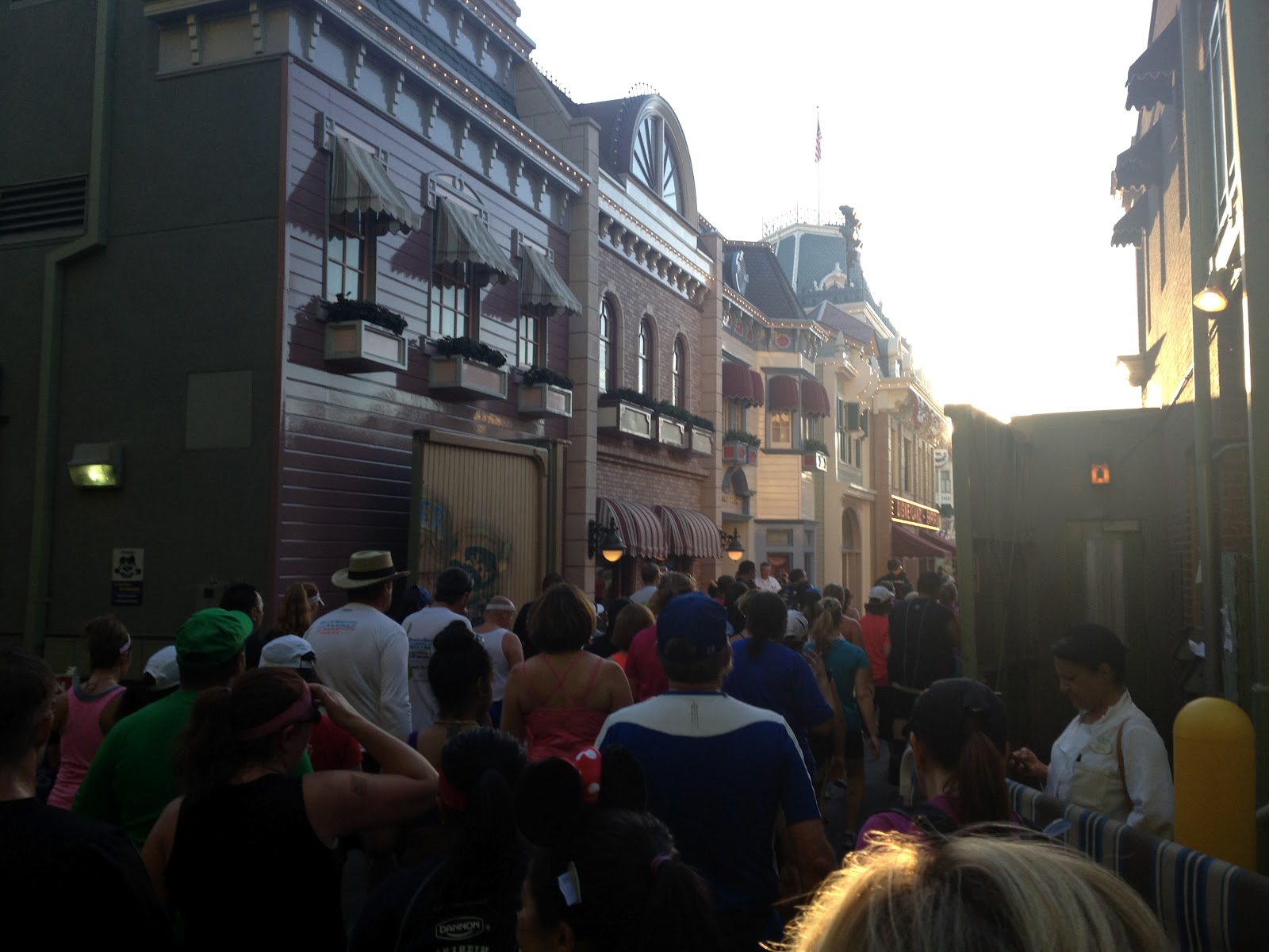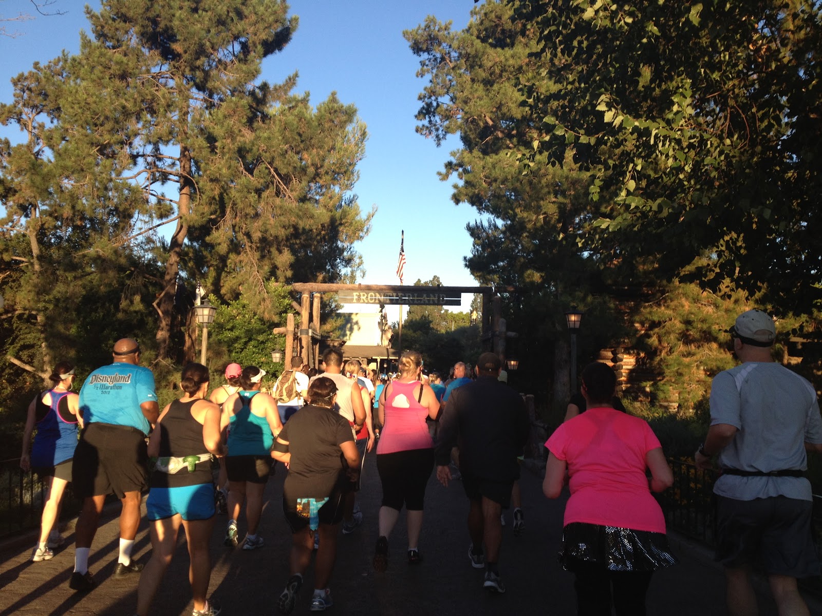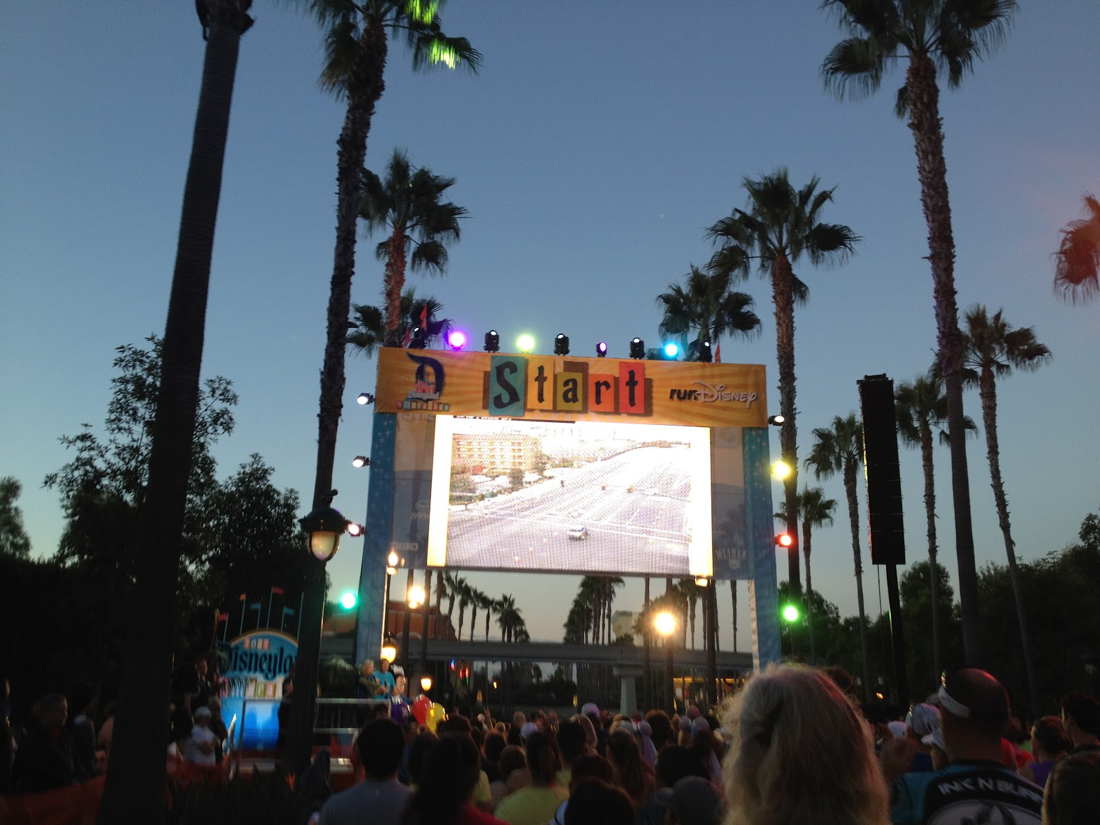 I walked over to the start of the race in the dark surrounded by other racers, so even though I was alone, I didn’t feel alone. On the way over I chatted with a woman who was dressed in a grass shirt and other tiki embellishments – very Adventureland. It was her first half marathon, too. We navigated our way through the crowds and confusion but we were placed in different corrals so we eventually parted ways and I made my way to corral G, the last corral, by myself. At that point I was pretty much last in line. Of 17,000 people.