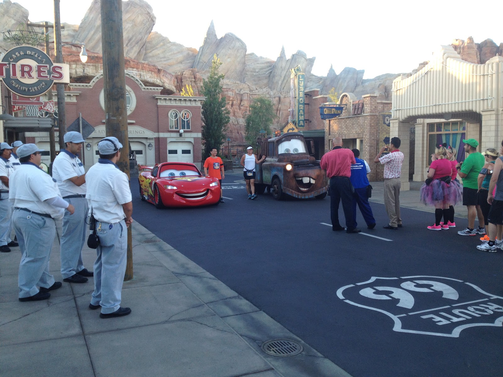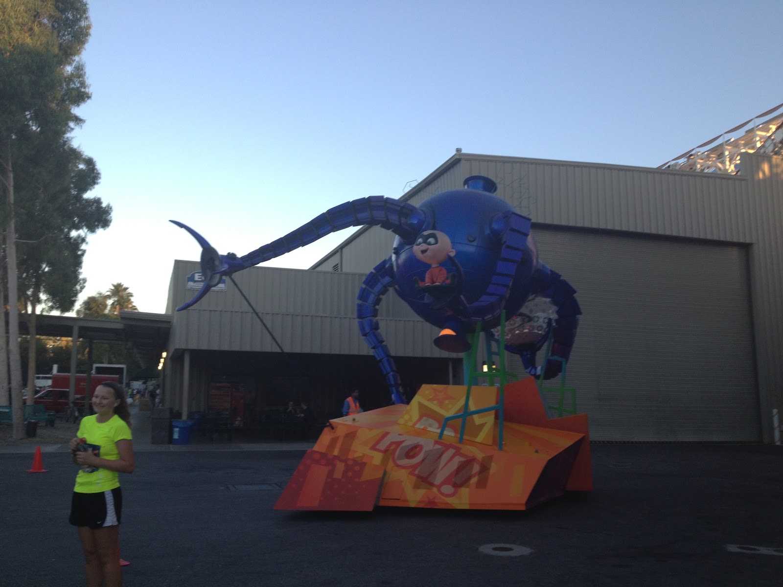 Somewhere between miles 1 and 2 we entered the backlot of Disney’s California Adventure. They had a few parade floats lined up along the way, like this one from The Incredibles (which was also a very popular racing costume, naturally).