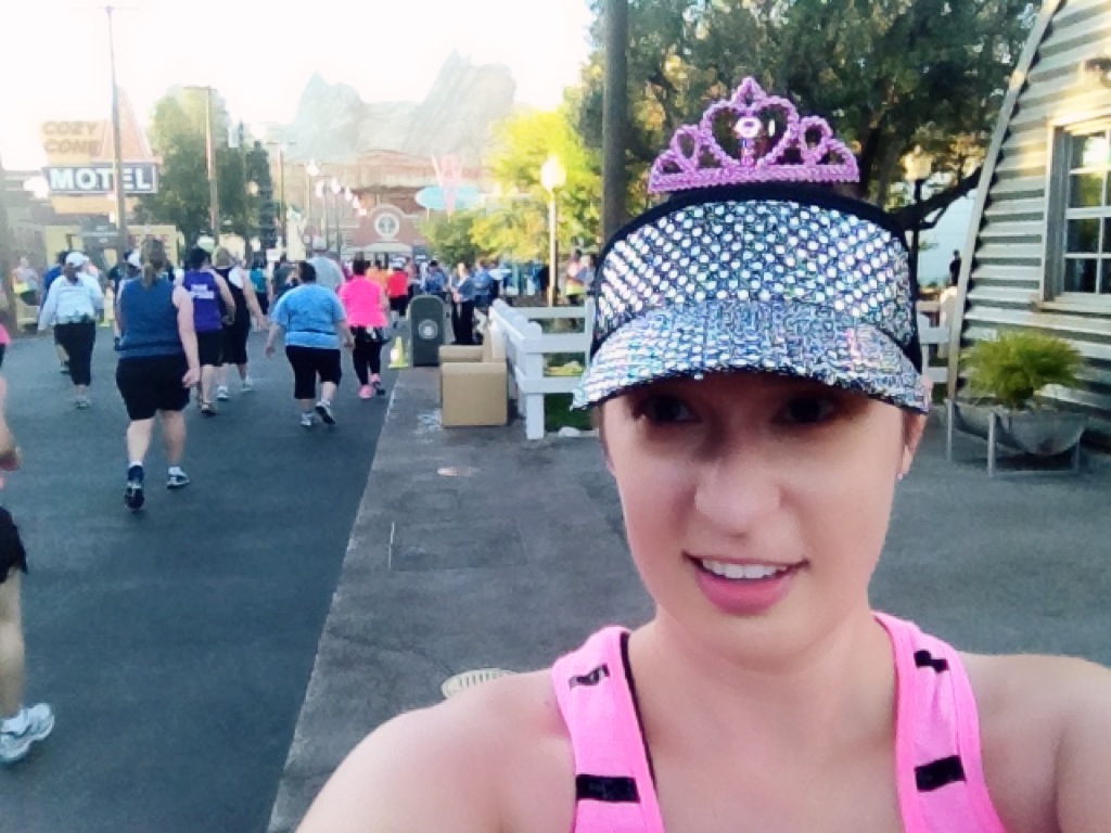 On the back of the bib was a tracking device, and we had to walk past a sensor to make sure it worked (I’ve always wondered about how they track your time – now I know!). The sensor was not only so race officials could track my time, but anyone who logged into the Run Disney website and registered could get updates on my progress via email, text message, or Twitter. Pretty neat!