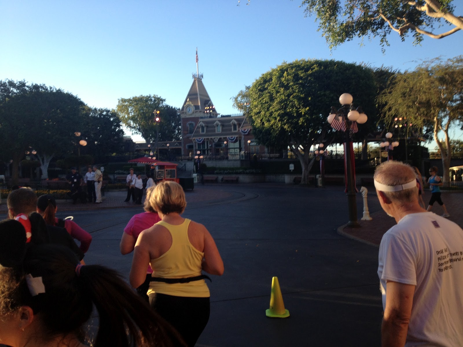 Then we entered the park from behind the Paradise Gardens dining area and ran towards Paradise Pier. The World of Color theme was playing and the dancing fountains were turned on. I wondered if the lights had also been on when it was still dark when the first couple of corrals made their way through DCA.