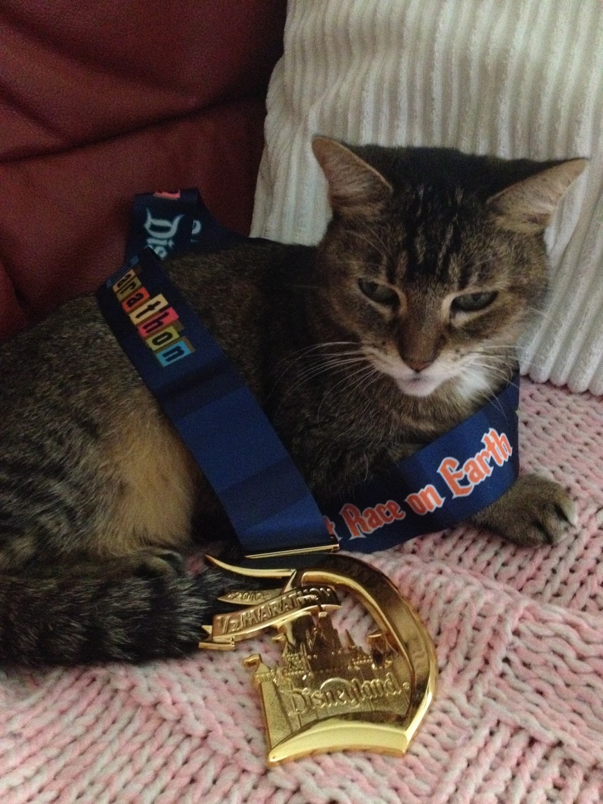 As we started to walk away from the Disneyland Hotel it crossed my mind that we never took a picture of me with my medal! So we remedied that immediately.