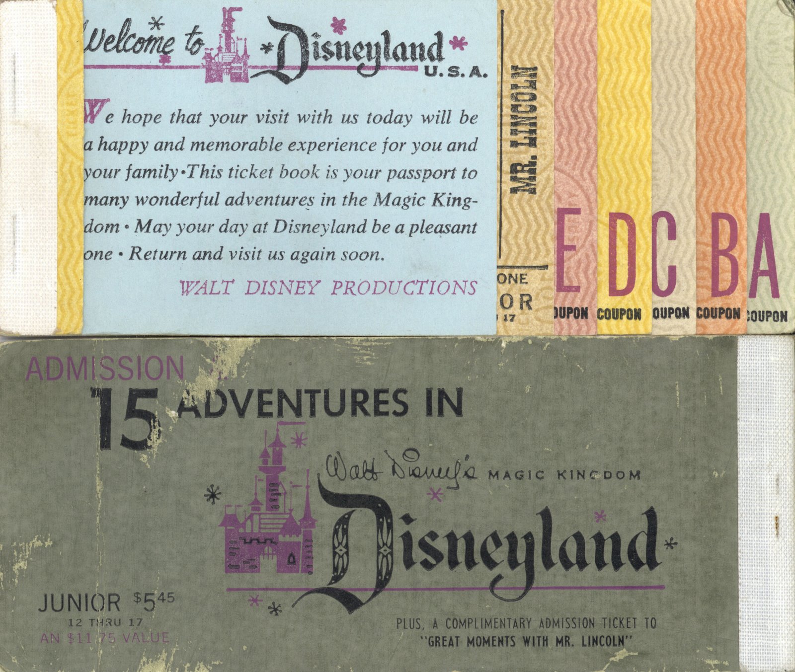Did you know that the Disney Parks used to work on a ticket-per-attraction system? Unless you are a hardcore Disney fan and/or you were born before 1975 you may not be aware of this. As I understand it, you paid an entrance fee and then you could buy books of tickets. The tickets, labeled A-E, could be traded in to experience an attraction. The bigger rides, such as Matterhorn or Pirates of the Caribbean, took E-tickets, which is where the expression “E-ticket ride” came from! This system was discontinued in 1982 when the Disney powers-that-be decided to switch to the all-inclusive pass we know and love today. You can read more about the old ticket system on Wikipedia here.