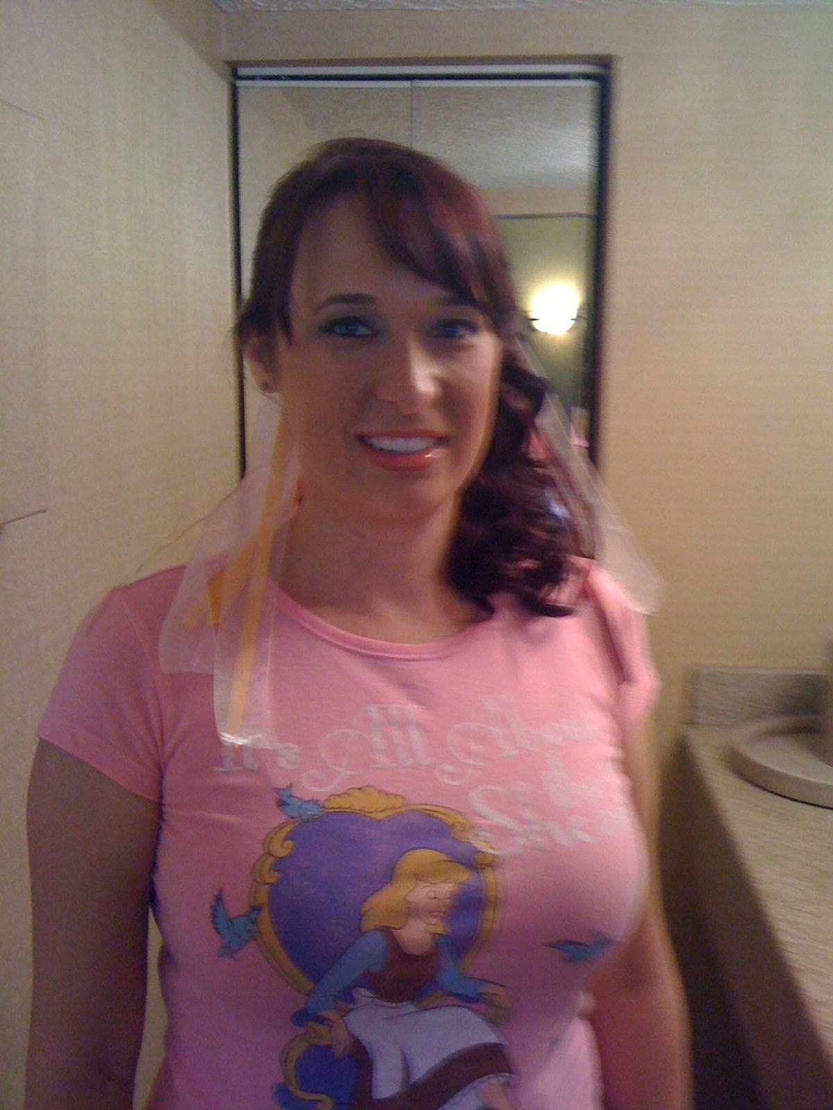 | (You’re also getting a sneak peak of my mock ribbon veil! I’m playing around with various ways to make it with random ribbon I have laying around.) |