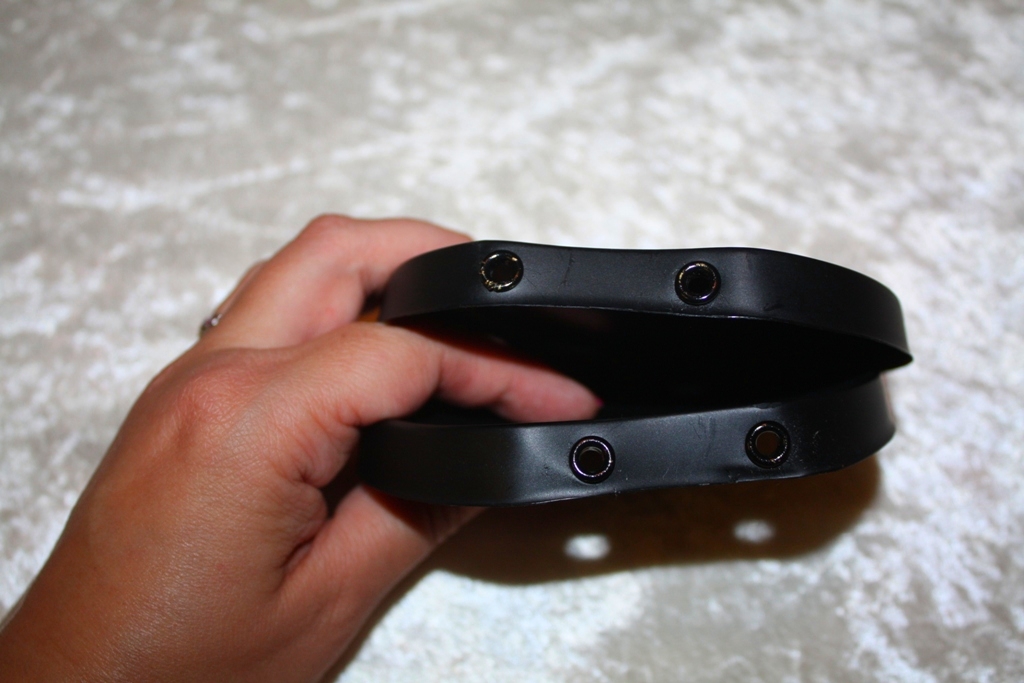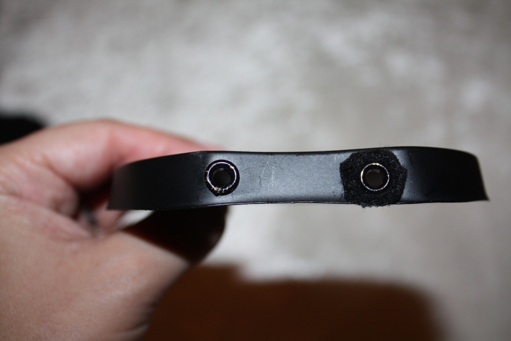 Step 2: Use a pair of pliers to pull the excess fabric out from under the grommets. You will have to tug at it with some force.