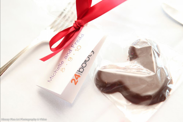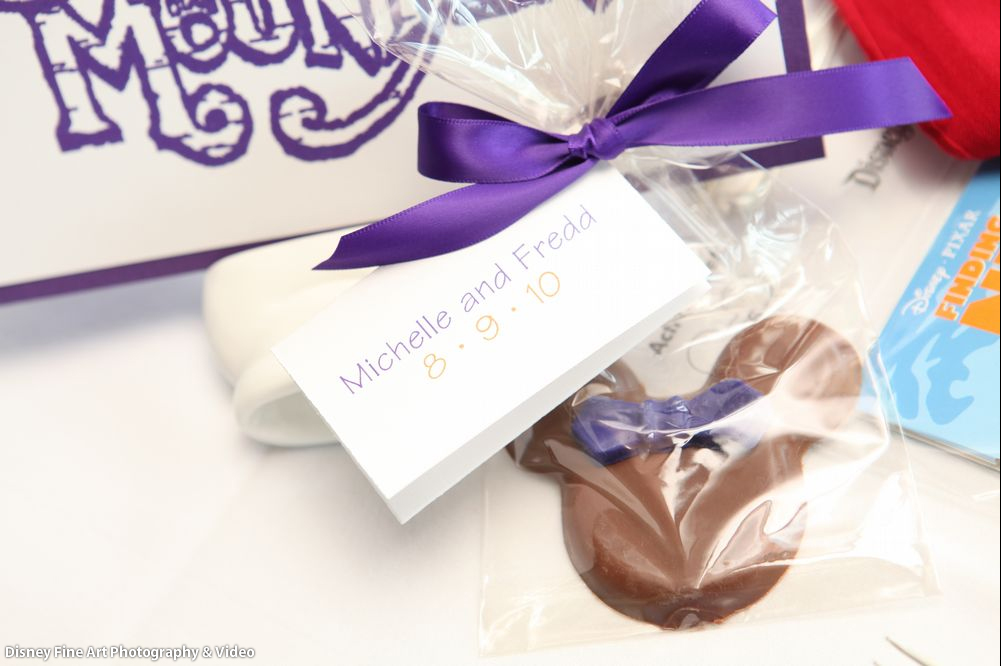My favors were provided by Impressions and were chocolate Mickey and Minnie silhouettes with a charity favor tag.