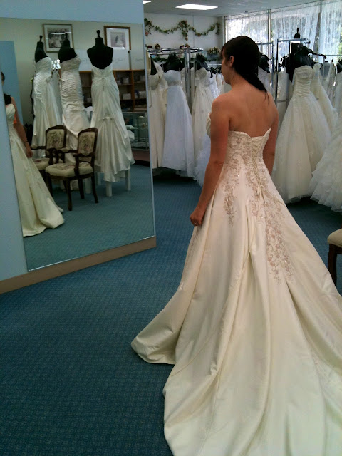While I’m away relaxing during our Disneyland mini-moon, please enjoy an entire week of these embarrassing photos of me trying on gowns!