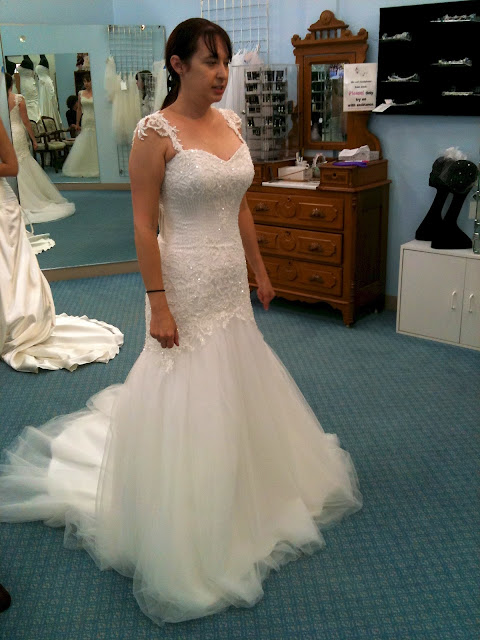 Another sample. I really liked this one. I thought the scalloped neckline was very pretty and flattering. But a little too much lace.