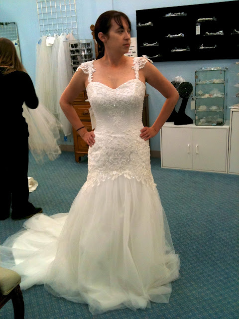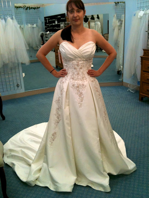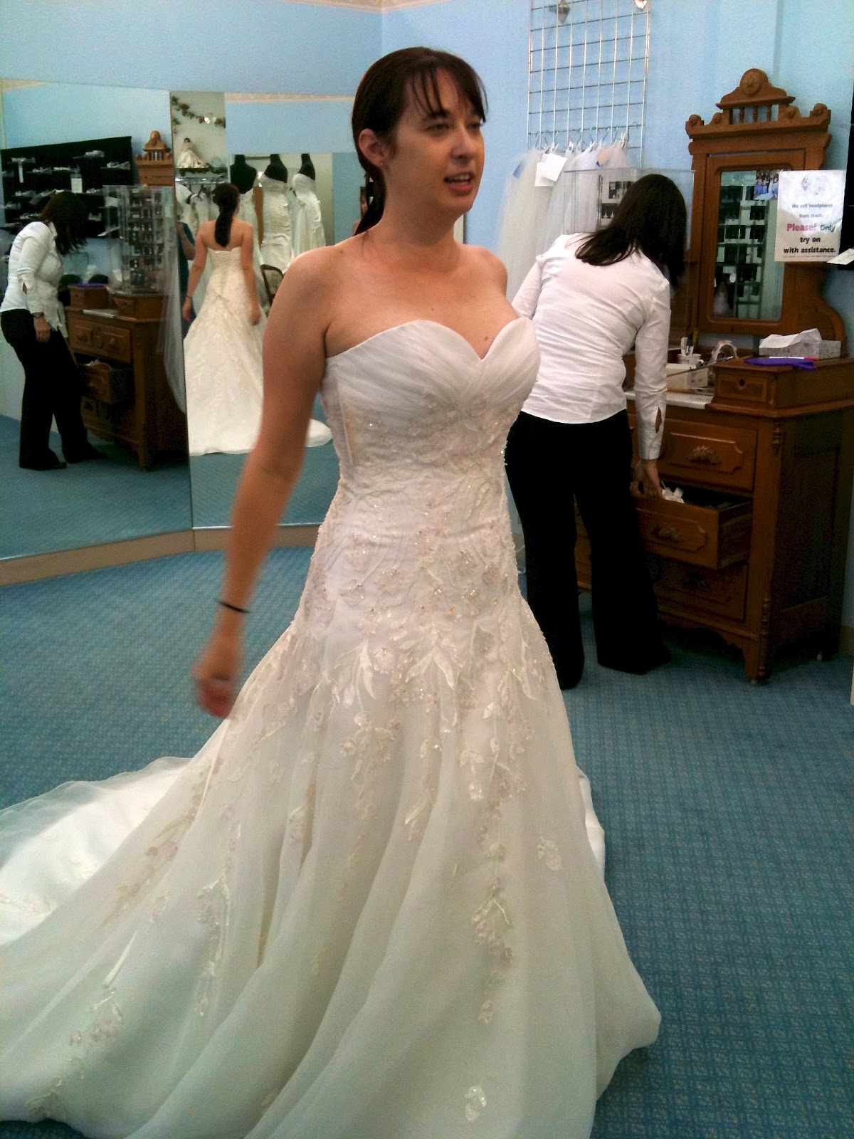 Another sample. This was the frontrunner today. You can’t tell from the pictures but the bodice is sooooooo sparkly. BUT it was just so ….. white. So bright white.