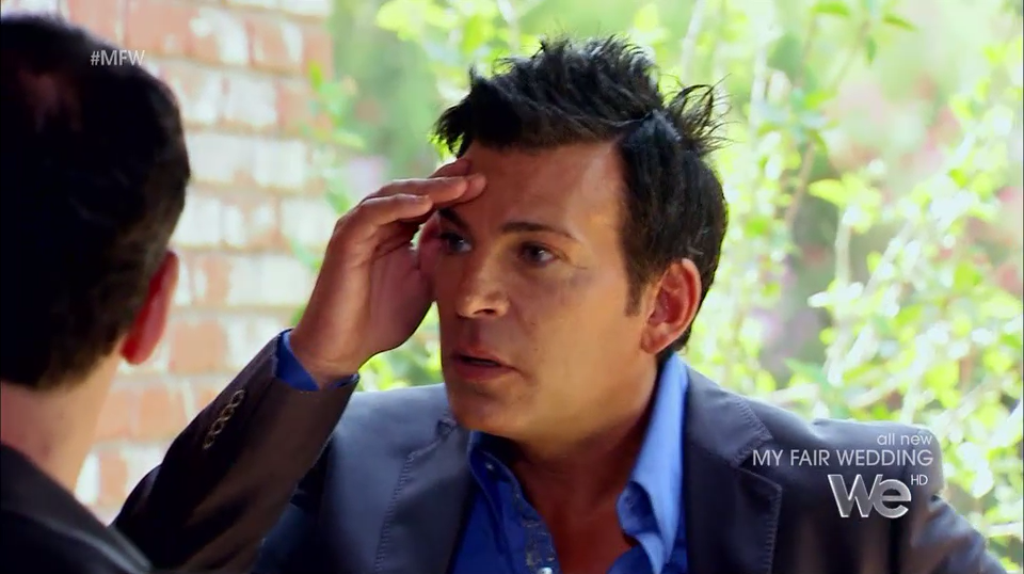 The bride breaks down and tells David that she needs guidance and she doesn’t want to be in the dark about her wedding any more. David tells her usually HE is in control but that now HE is putting HER in control of her own wedding, and once you pick yourself up off the floor, please take Shot #2.