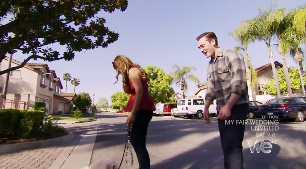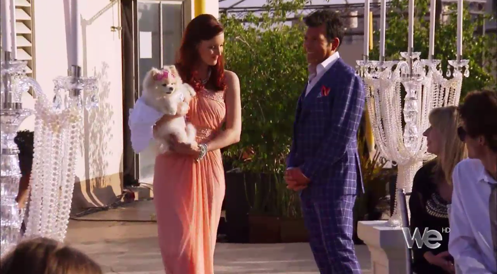 Meanwhile, the bride tries in vain to get her ring bearer to go potty before the ceremony, to avoid any unfortunate accidents. Â Because that’s how dogs work.