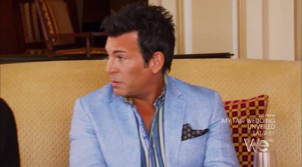 Aside from constraining the puppies a bit better, the gown looks pretty amazing. Â Of course it’s a gown from David’s new line with Mon Cheri.