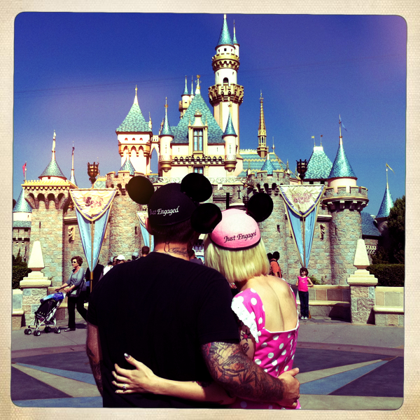 I suppose we aren’t your typical Disney nerds. He is a horror movie buff, I am a burlesque dancer and we are both covered in tattoos… but we rediscovered our childhood love of Disney magic on our first trip to Walt Disney World with my family last winter. Paco grew up in Santa Cruz and San Francisco so he has fond memories of several trips to Disneyland. I grew up in Alaska, but my parents took our family on two very special Disneyland vacations. Being in WDW reawakened those special memories in both of us. We began planning a Halloween trip to our original love immediately when we got home. Paco knew that Disneyland would be the perfect special place to propose so he began making his secret plans, as I was busy booking our vacation.