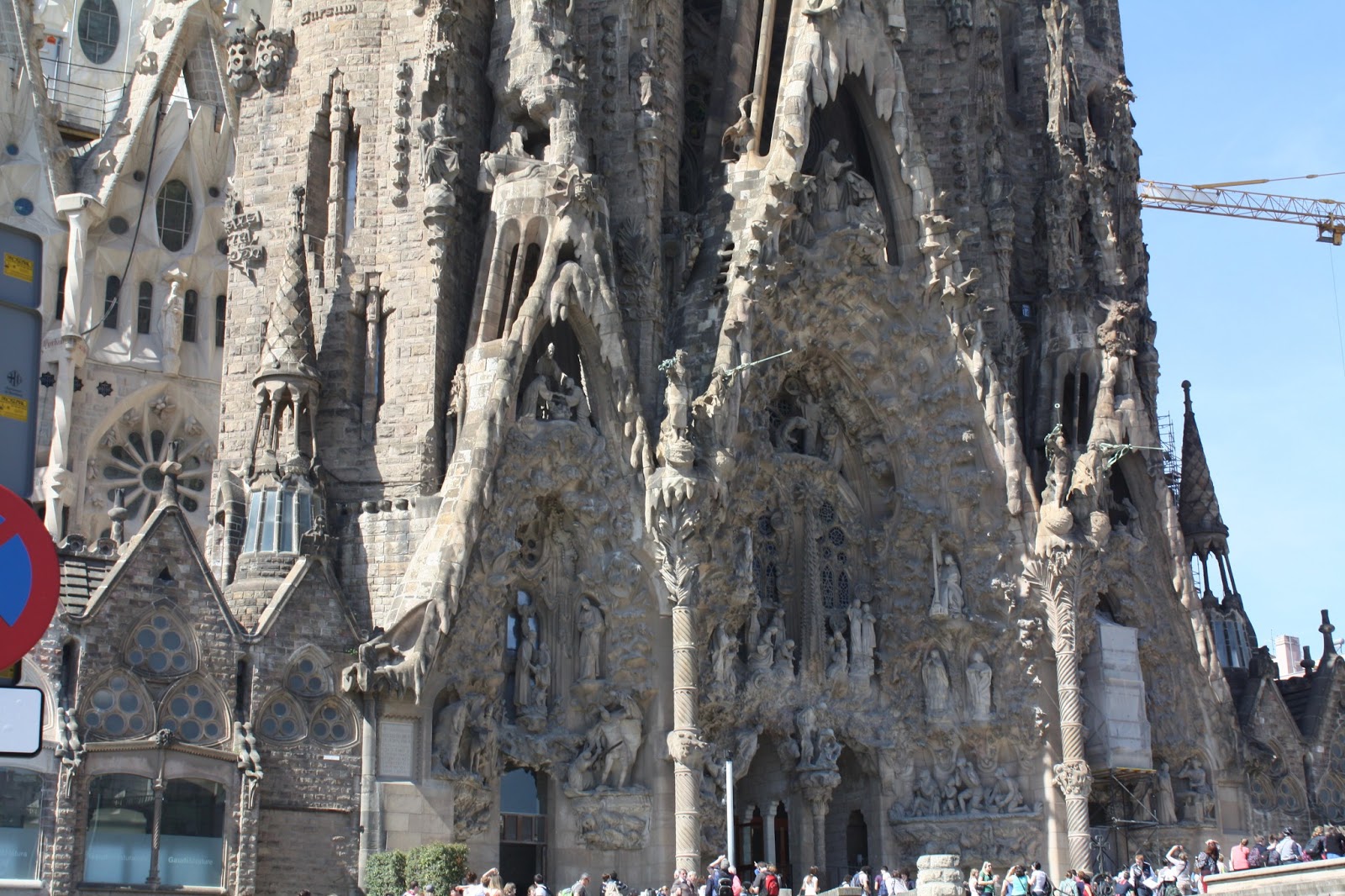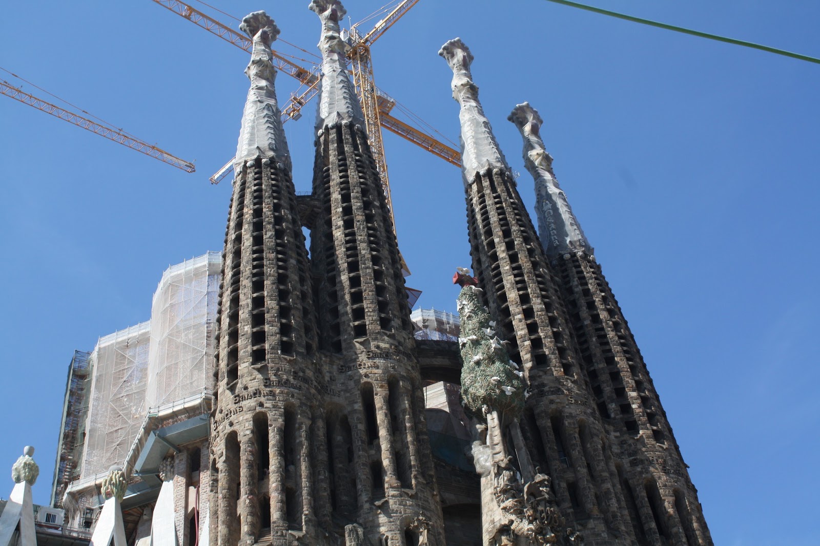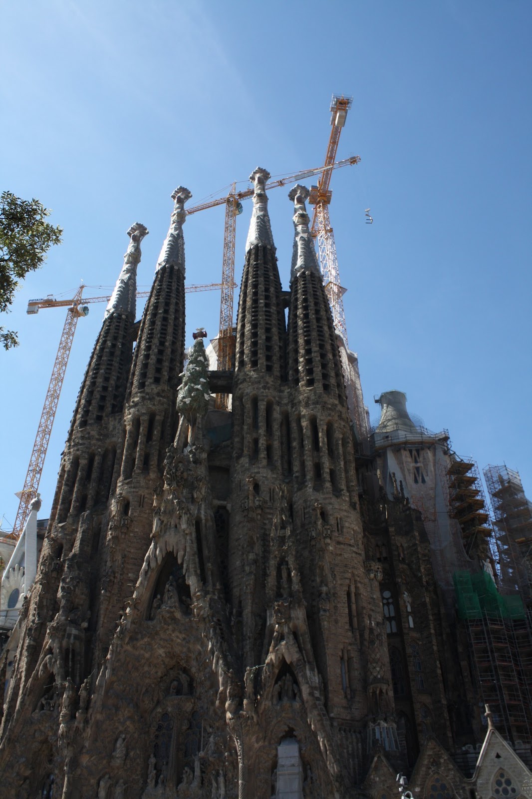 Our first stop on the metro line was La Sagrada Familia. La Sagrada Familia is a large (impossibily large) Gothic style church designed by Gaudi, who died in the 1920s before it was finished. The church is still under construction and won’t be finished for several more years. It’s so impressive and breathtaking. I took a lot of close-ups but we didn’t have time to walk far enough away to get a full shot of it. Luckily there are plenty on the internet, if you are interested in seeing it. I hear the inside is beautiful, but we didn’t have time to wait in line for a ticket, given everything else we wanted to see.