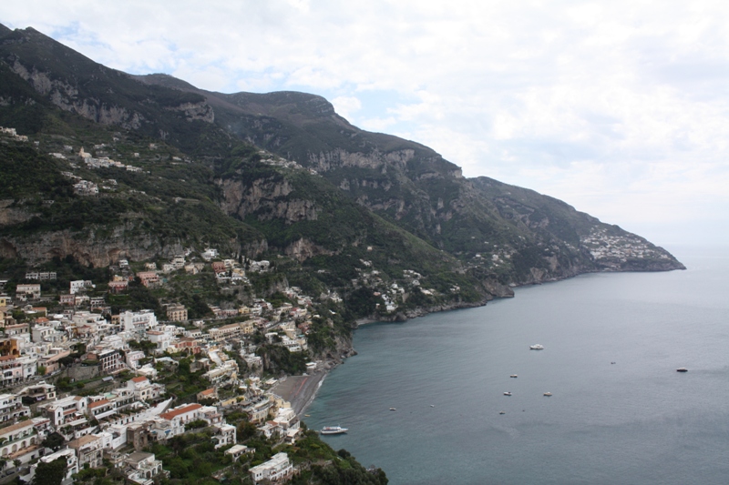 We found a shop with free samples of Limoncello and made lots of purchases (after trying lots and lots of samples!). We went back to our meeting point and were sitting on the bus and witnessed a car accident right in front of us! We were surprised we hadn’t seen one before now because the drivers in Naples are crazy!! Sasha said this was common every day stuff in this area. Next we took the “mama mia” road to Positano which was about an hour drive through twisty cliffside one-lane roads, stopping a couple times for picture ops.