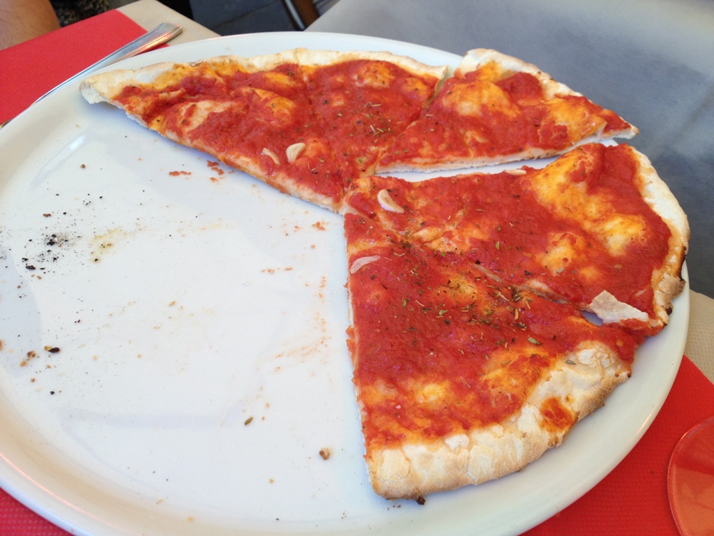 The Colosseum is so massive and there is so much to see but we were behind schedule so we took a taxi to the Trevi Fountain. The Trevi Fountain was packed and we were really hungry and cranky and didn’t want to deal with the crowds at the moment, so we walked a couple blocks and found a restaurant who said they could make us a pizza real quick, so we sat down and shared a glass of wine and a pizza with oregano and garlic (no cheese! Turns out that some pizza doesn’t automatically come with cheese).