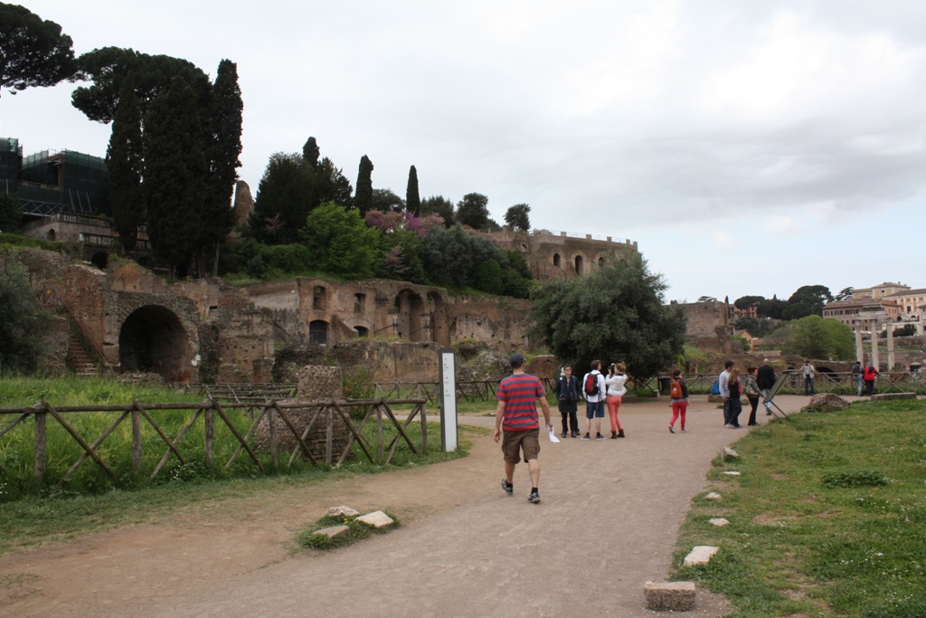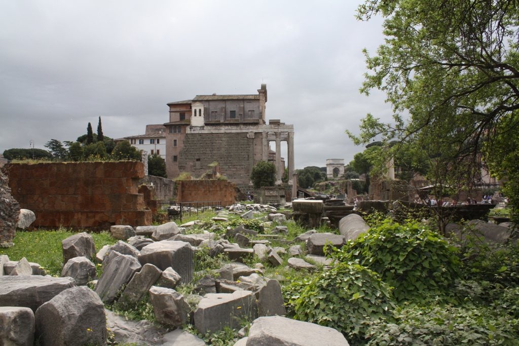The train ride went smooth and having people to talk with made the approx 45 minute ride fly by. We exited from the Roma Ostiense station which is closest to The Forum and Colosseum, and we shared a taxi to the Circus Maximus with another family from our roll call. We all then went inside The Forum where we split because I had a bathroom emergency. Tim and I walked all around and finally found the bathroom, and then we couldn’t find our starting point for our downloaded audio tour (by Rick Steves – highly recommended) because we failed to pick up maps at the entrance. We thought we had a map but it turns out our map was only a fraction of the grounds. We wasted a lot of time walking around the ruins until we finally found our starting point. From there we did our audio tour which took about an hour.