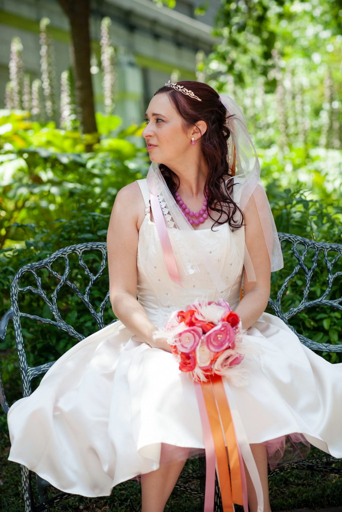 Disney did a FANTASTIC job with creating my vision, right down to matching my fabric flowers out of fondant (I exchanged a few emails with Chef Gracie, who was dedicated to mimicking my flowers perfectly, right down to the hidden Mickeys – thanks Gracie!!!) They even added some shimmer to the layers which I wasn’t expecting. And our clay likenesses, crafted by my friend Marta, fit on the cake perfectly. I like to think Walter is watching over us, approving of our union.